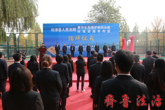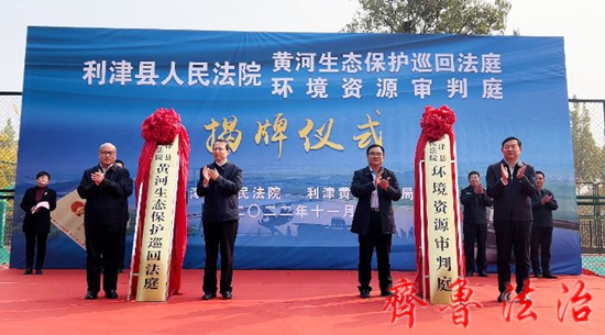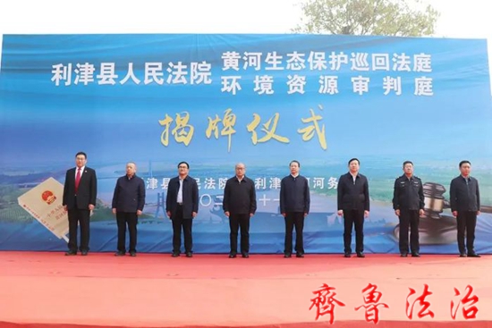 东营利津县人民法院举行“黄河生态保护巡回法庭”“环境资源审判庭”揭牌仪式。市委副书记、政法委书记孙早军,市中级人民法院党组书记、院长赵国滨等有关领导出席仪式