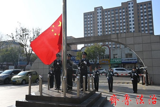 齐鲁法治(东营讯)李春军 10月8日,东营垦利区法院举行升国旗仪式,全体干警共同向伟大祖国致敬,献上最真挚的祝福。