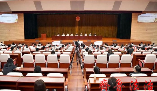 颁发仪式以视频形式举行,东营中院党组书记、院长赵国滨,部分人大代表,政协委员,特邀监督员和全市两级法院干警分别在中院、各县区法院分会场参加颁发仪式。