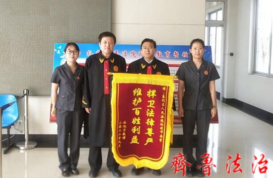 “感谢孙法官维护公平正义,帮我维权!”近日,一面镌刻着“捍卫法律尊严,维护百姓利益”的锦旗送到东营垦利区胜坨法庭孙建平法官审判团队。