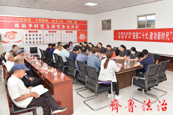 活动当天,东营区法院向都福李村赠送部分党建书籍和法律书籍。区法院领导查看了都福李村党建资料,了解都福李村的党建开展与发展情况,并现场指导都福李村的党建工作。
