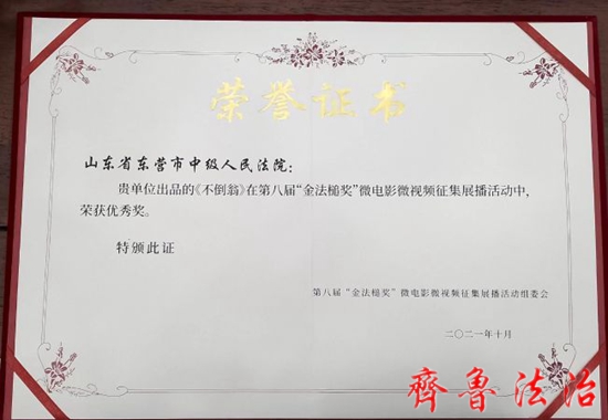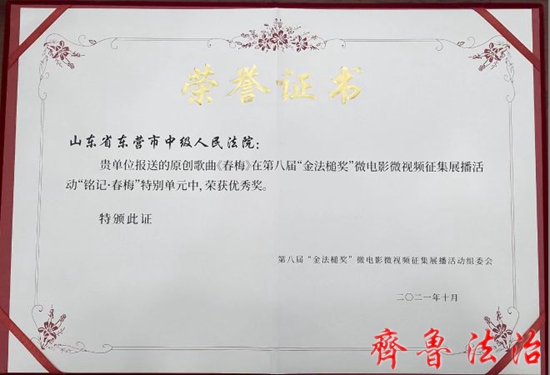 其中,东营市法院作品《不倒翁》获微视频类优秀奖,《春梅》获“铭记·春梅”特别单元优秀奖。下一步,东营中院将继续加强组织策划,加大工作力度,讲好新时代东营法院故事,传递人民法院好声音。