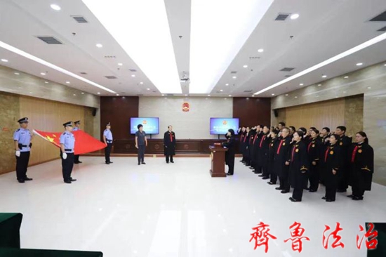 新任法律职务人员面向国旗,举起右拳,庄严宣誓,铮铮誓词表达了全体新任职人员忠于法律、忠于人民、忠于司法事业的坚定信念。新任职人员表示将牢记誓言,在新的岗位上履职尽责,恪尽职守,为法院工作高质量发展贡献力量!