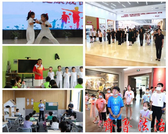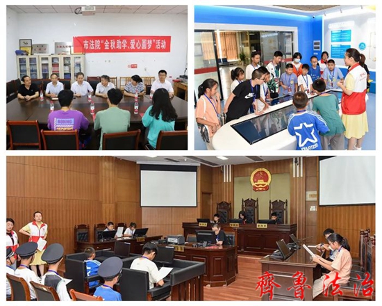 法院开放日。7月29日、8月9日、8月10日,东营市实验中学、胜利油田第一初级中学、胜利五中等学校的师生走进东营中院,近距离体验法律威严。学生们学法后变身为“小小普法员”,走上街头、走进社区发放普法资料,积极宣传预防酒驾、非法集资、养老诈骗等法律知识。7月29日、8月12日,广饶县法院邀请西毛村假日爱心学校的师生、法院干警子女参观青少年法治教育长廊,聆听法治课,并用画笔描绘出自己“眼中的法院,心中的法律”形象。