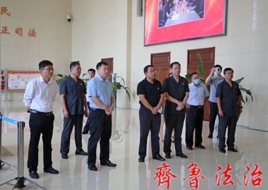 齐鲁法治(东营讯)李春军 9月1日上午,山东省高级人民法院政治部一级调研员张明一行2人,在东营市中级人民法院政治部副主任、四级调研员袁俊峰等陪同下,到东营广饶法院开展实地考察座谈。县人大党组副书记、副主任邢少鹏,县委政法委常务副书记刘彬,广饶法院党组书记、院长陈立田等院领导及相关庭室负责同志陪同调研。