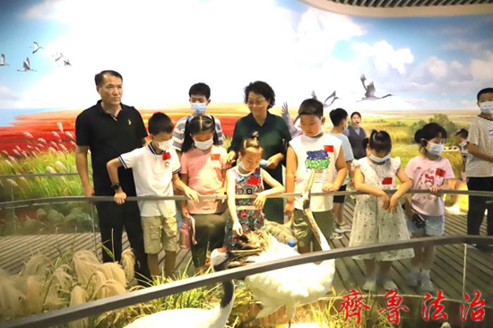 齐鲁法治(东营讯)李春军 8月18日,东营中院继续组织开展“少年儿童心向党、用心用情伴成长”暑期儿童关爱服务系列活动,组织25名干警子女到东营市党性教育实践基地、黄河文化馆和东营中院开展红色教育社会实践活动。东营中院关工委成员、离退休干部代表及工会、机关党委、妇联、离退休干部处、少年法庭等有关干警参加活动。