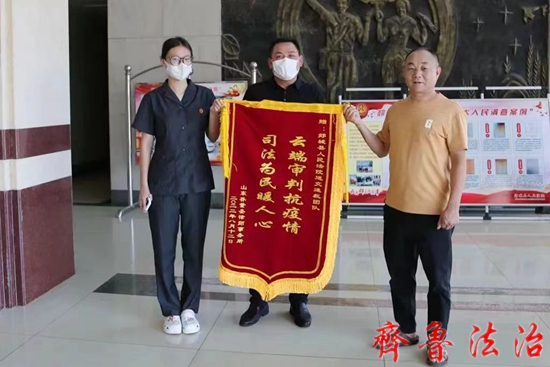 齐鲁法治(临沂讯)于清林 8月15日一大早,一起交通事故纠纷案件的当事人王某将一面写着“云端审判抗疫情,司法为民暖人心”的锦旗送到临沂市郯城县人民法院道交速裁团队法官手中,激动地说:“对方是东北的,离这好几千里呢,疫情又这么紧张,俺寻思这案子到猴年马月也难了结,没想到法院“线”上办案这么快就给俺办妥了!感谢法官真心实意为俺老百姓办事! ”