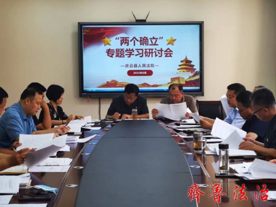 齐鲁法治(德州讯)李顺花 8月3日,德州庆云法院召开专题学习研讨会,就深入学习领悟“两个确立”的决定性意义开展专题学习研讨,党组书记、院长曲子刚主持会议。