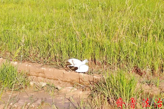 7月27日,东营中院环资庭法官到黄河口调研生物多样性保护,途中发现一只受伤的白色鸟类,经查看其脖颈和右侧翅膀受伤严重,法官立即联系市观鸟协会与野生动物保护协会,经专家确认,受