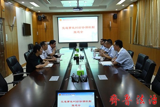 齐鲁法治(东营讯)许新华 为妥善化解交通事故纠纷,进一步推进涉交通事故纠纷多元化解机制建设,8月11日上午,东营垦利区法院与保险公司召开涉交通事故纠纷诉调对接协调机制推进会,就涉交通事故纠纷的诉调对接工作进行交流。党组成员、副院长任玉峰与立案庭干警,保险公司理赔中心领导及相关负责人参加会议。