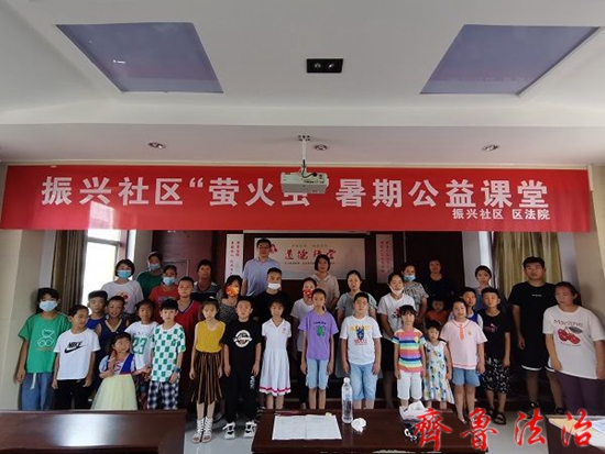 齐鲁法治(东营讯)燕翠莲 7月18日上午,东营垦利区法院参加了振兴社区“梦想课堂”青少年暑期萤火虫公益课堂开课仪式,并为学生和家长们分享了暑期安全知识。