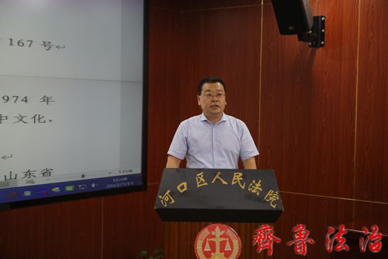 齐鲁法治(东营讯)许新华 7月15日下午,东营河口法院组织开展了第一期“法知堂”教育培训,党组副书记、副院长李汝江出席开班仪式并致辞,由刑事审判庭庭长韩安民进行专题授课,全体法官助理参加培训。