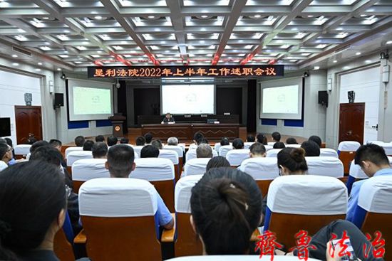 齐鲁法治(东营讯)燕翠莲 7月14日下午,东营垦利区法院召开2022年上半年工作述职会议。党组成员、副院长杜海军主持会议,院领导班子成员及全体干警参加会议。