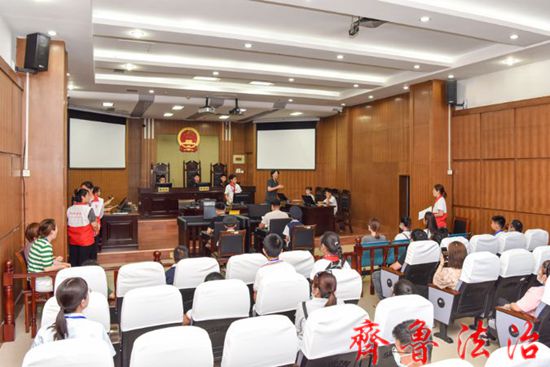齐鲁法治(东营讯)李春军 为促进家庭教育健康发展,改善增进亲子关系,培养青少年的法治意识,5月至6月,东营市东营区法院用时六周举办了首期“百个家庭进法院”活动,6组120个家庭通过线上自愿报名的方式参与,沉浸式体验法治教育。活动中,东营区法院少年法庭法官张婷首先带领孩子和家长们参观法治教育基地、未成年人审判社会工作站、安检区等审判工作场所,了解法院内部场所的功能,近距离感受法院文化。之后孩子们来到刑事审判庭,倾听了少审法官对法徽、法袍、法槌含义的详细介绍,了解法庭的布置、庭审程序,在法官的指导下,孩子们进入模拟法庭体验环节。模拟法庭根据真实案例改编了一起涉及校园欺凌的敲诈勒索案件和一起校园盗窃案件,孩子们分别扮演审判长、审判员、公诉人、辩护人、法定代理人等角色,并进行角色换,让孩子们深入了解每个角色的职能,体验了庭审活动的全过程。