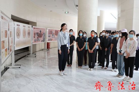 展览分为“先贤家风”“红色家风”“时代家风”“ 廉洁家风”四个板块,展出山东世家望族、革命先辈、先锋模范等优秀家风、廉洁家风故事。在讲解员的解说下,大家认真观看展板,仔细听取讲解,透过真实生动、涤荡人心的故事,深切体会了好家庭、好家教、好家风带来的魅力。