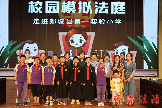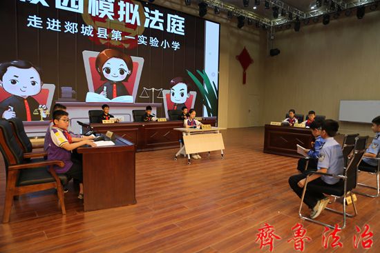 齐鲁法治(东营讯)王振营 5月30日上午,山东省临沂郯城县第一实验小学五年级的同学们收到一份别致的“六一”儿童节礼物——郯城县人民法院送上门来的沉浸式庭审体验活动。此次活动以现场直播的形式开展,700余名五年级学生分别在现场和通过多媒体平台收看视频零距离体验庭审,感受司法力量。