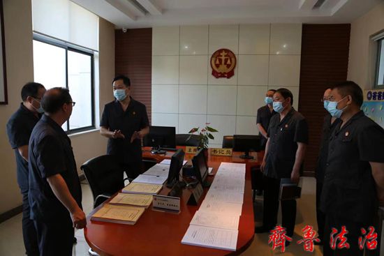 在李庄法庭,与会人员现场查看了“为群众办实事示范法庭”与“沂”起学理论活动氛围营造情况,参观了驻庭人民调解员工作室、法庭调解室,查看了相关卷宗和诉源治理相关材料。