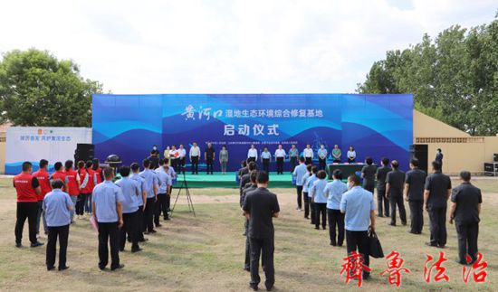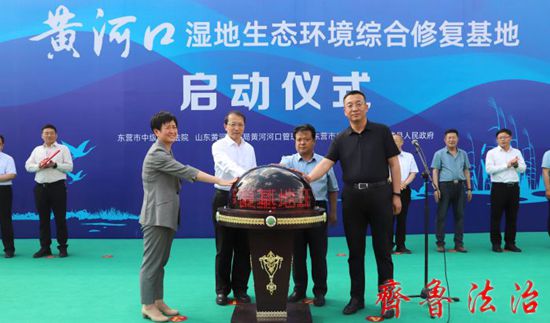 齐鲁法治(东营讯)王振营 5月26日,东营市法院、黄河河口管理局、市生态环境局、利津县政府在黄河利津刁口河段举行黄河口湿地生态环境综合修复基地启动仪式,东营市法院党组书记、院长赵国滨,黄河河口管理局党组书记、局长裴明胜,市生态环境局副局长张玉国,利津县委常委、政法委书记王乃梅共同开启协作启动键,市法院党组副书记、副院长赵有明主持启动仪式。