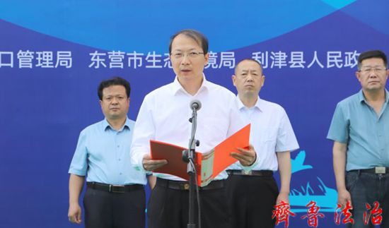 5月26日,东营市法院、黄河河口管理局、市生态环境局、利津县政府在黄河利津刁口河段举行黄河口湿地生态环境综合修复基地启动仪式,东营市法院党组书记、院长赵国滨等共同开启协作启动键,市法院党组副书记、副院长赵有明主持启动仪式。