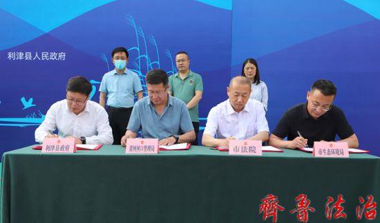 裴明胜、张玉国就落实好黄河口湿地生态环境综合修复基地协作框架协议提出要求。市法院、黄河河口管理局、市生态环境局、利津县人民政府联合签署了《黄河口湿地生态环境综合修复基地协作框架协议》。