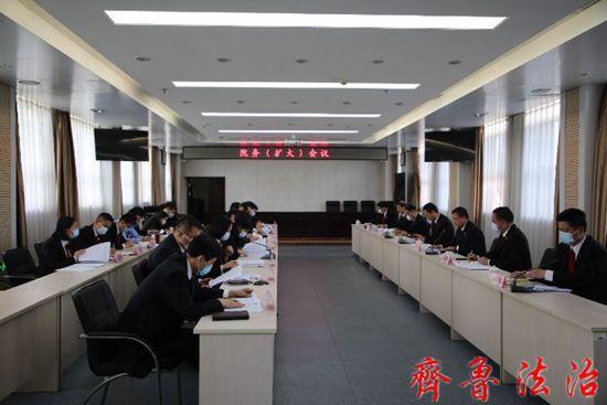 齐鲁法治(东营讯)王振营 5月11日下午,东营广饶法院组织召开院务扩大会,对1-4月份工作质效和重点工作推进情况进行了总结分析,对下一步工作措施进行了安排部署。党组书记、院长陈立田等领导班子成员及庭室负责人参加会议。党组副书记、副院长李玉山主持会议。