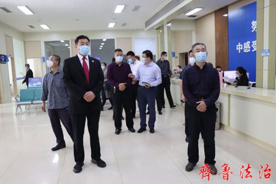 调研组一行实地视察了法院诉讼服务中心,孙学军介绍了网上立案、案件分流、诉调对接、诉源治理等方面的工作情况和下一步工作打算。调研组对县法院多元解纷工作取得的成绩给予充分肯定,认为县法院严格贯彻习近平总书记“把非诉讼纠纷解决机制挺在前面,从源头上减少诉讼增量”的重要指示精神,通过繁简分流、简案快审、繁案精审等有效措施,有力保障了公正司法,有效推动了平安利津建设。