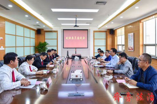 齐鲁法治(东营讯)李顺花 为进一步畅通沟通渠道,促进法院工作提质增效,4月24日,东营市东营区法院主动邀请区政协常委、区政协社会法制与提案委员会副主任黄岗、区政协委员、政协常委、山东齐融律师事务所主任张强等5名律师委员参加政协委员座谈会,充分听取律师委员意见建议。区法院党组书记、院长丁文强,党组成员、副院长李乃煊,副院长李凤华,党组成员、副院长张庆彬,立案、执行业务部门负责同志参加。