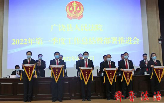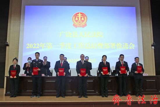 会上宣读了《关于表扬在2022年第一季度“六比九争三创”活动中表现突出集体和个人的通报》、《法律实务研究“六个一”课题第一季度评选结果通报》,并对第一季度在“六比九争三创”和法律实务研究“六个一”课题活动中表现突出的集体和个人进行了颁奖。会议宣读了《广饶县人民法院关于开展司法作风突出问题集中整治的方案》。陈立田院长从坚定信心,肯定成绩,切实推进法院工作新发展;认清形势,查找短板,提升工作的责任感和紧迫感;强化担当,创新实干,全力抓好法院各项工作推进落实三方面作了总结讲话,围绕推进诉源治理、强化审判监管、服务经济发展、加强队伍建设等方面,对下一阶段的工作进行了部署安排。