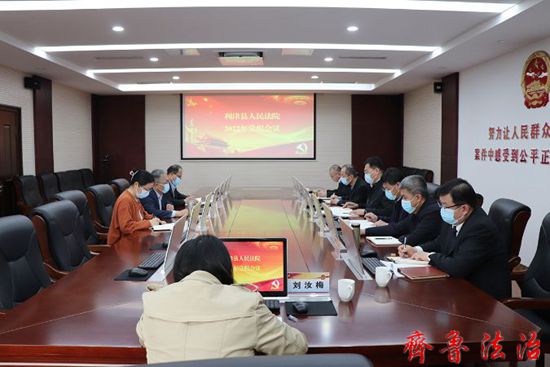 齐鲁法治(东营讯)李顺花 4月18日下午,东营利津法院召开党组会议,传达学习平安利津法治利津建设暨县委政法工作会议精神。党组书记、院长孙学军出席并讲话,党组副书记、副院长盖盛永主持会议,班子成员参加会议,审委会专职委员及相关庭室负责人列席会议。