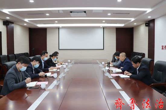 齐鲁法治(东营讯)李顺花 4月15日,东营中院副院长宋学民到利津主持召开司法支持重点上市后备企业座谈会,山东凤凰制药股份有限公司、山东中阳碳素股份有限公司相关负责人、东营中院环境资源庭负责人李敏、利津法院副院长盖盛永参加座谈。