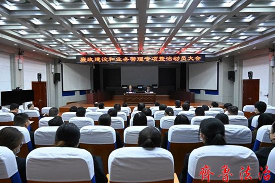 齐鲁法治(东营讯)李春军 4月12日晚,东营垦利法院召开“加强廉政建设和业务管理专项整治活动”动员会议,领导班子成员及业务庭室全体干警、非业务庭室负责人参加会议。