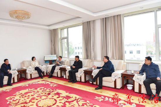 4月14日,东营区法院党组书记、院长丁文强与油气集输总厂副厂长邢量一同前往六户镇,与六户镇党委书记刘国强,党委副书记、镇长司红芳进行座谈,调研油气集输总厂原油库管道铺设引发的矛盾纠纷。
