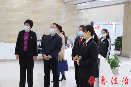 韩兵一行先后实地参观了审判法庭、诉讼服务中心、法院文化长廊和党员活动室,观看了东营中院党史学习教育专题片。张明磊从加强政治建设、党支部组织力提升、党员教育管理、党建与业务深度融合等四大方面工作及法院正在开展的“创新实干、事争一流”大讨论、疫情防控、支部换届准备等近期重点工作情况进行了介绍,对市直机关工委多年来对市法院机关党建工作的指导和关心表示衷心感谢。