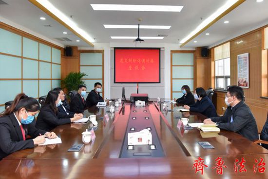 齐鲁法治(东营讯)李春军 3月23日下午,东营市东营区法院、市保险行业协会召开了道交纠纷诉调对接座谈会。东营区法院审判委员会专职委员李兰海、道交审判团队负责人胡星红,市保险行业协会秘书长赵述丽、副秘书长张兴华参加会议。