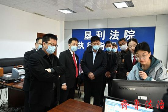 付兆钦主任一行实地查看了法院诉讼服务大厅、审判法庭、执行指挥中心等场所,详细了解了线上线下便民诉讼服务、法官办公办案一体化监管平台、全流程网上办案系统,智慧执行平台等情况,听取了张志刚院长关于巩固政法队伍教育整顿成果有关情况的专题汇报。