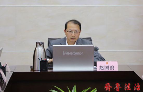 齐鲁法治(东营讯)李春军 3月25日下午,东营中院党组理论学习中心组围绕“深入学习习近平法治思想,不断推动人民法院工作高质量发展”开展集中学习研讨。党组书记、院长赵国滨主持会议并讲话,院领导班子成员、协管领导、县级干部、各庭室(团队)负责人参加学习研讨。会上,原文学习了《习近平法治思想学习纲要》有关内容,党组成员及部分县级干部、中层负责人作了研讨发言。