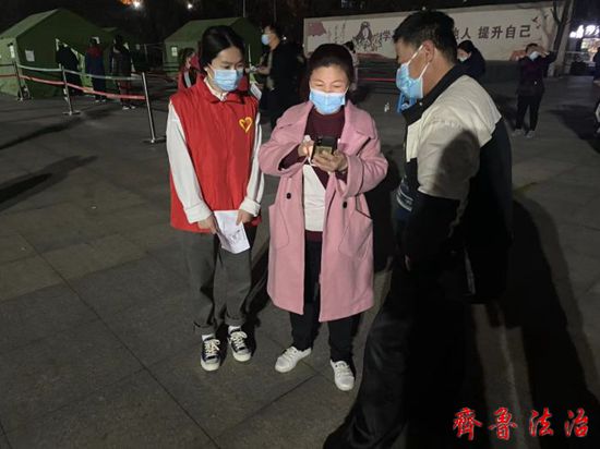 齐鲁法治(东营讯)李春军 “请佩戴口罩、保持一米间距”“请进行核酸检测预登记”“请提前打开健康码”……这两天不同的居民社区里都出现了东营市法院志愿者的身影,一件件红色的志愿服、一句句暖心的提醒,为排队中核酸检测的居民增添了一份温暖与安心。