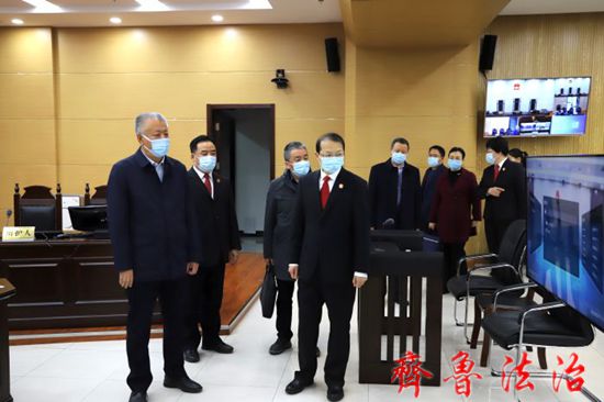 李俊峰一行实地察看了市中级法院执行指挥中心、诉讼服务中心、12368诉讼服务热线、审判法庭、互联网法庭等场所,详细了解执法办案、纠纷化解、诉源治理、线上便民诉讼服务、疫情防控形势下互联网开庭工作等情况,听取了赵国滨院长关于巩固深化政法队伍教育整顿成果、加强队伍建设、促进公正司法的专题汇报。