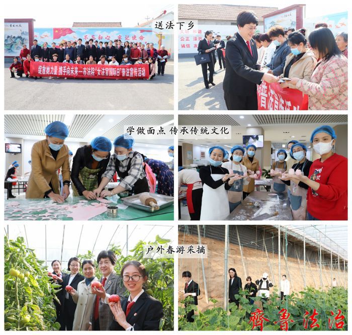 “三八”国际劳动妇女节期间,中院妇联组织开展了女法官“送法下乡”、“学做面点、传承传统文化”、户外春游采摘等系列庆祝活动,让广大女干警在丰富多彩的活动中凝聚力量、奉献爱心、愉悦身心、助力工作。