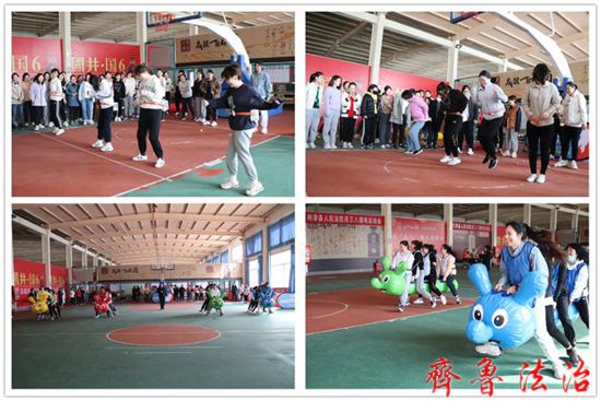 齐鲁法治(东营讯)李春军 春光明媚,万物争荣。为庆祝第112个国际三八妇女节,展现法院女干警的巾帼风采,倡导健康向上的生活方式,3月8日上午,东营利津法院近70余名女干警欢聚一堂,举行“追梦新时代 一起向未来”为主题的庆“三八”趣味运动会。党组书记、院长孙学军出席开幕式并发表热情洋溢的致辞,党组副书记、副院长盖盛永主持开幕式。