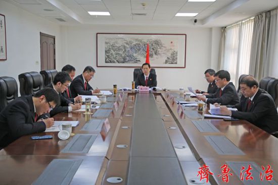 齐鲁法治(东营讯)李春军 2月24日,东营广饶法院召开党组理论学习中心组第二次集中学习研讨,研讨聚焦系列会议精神和班子自身建设。党组书记、院长陈立田主持会议并讲话,其他班子成员参加研讨。