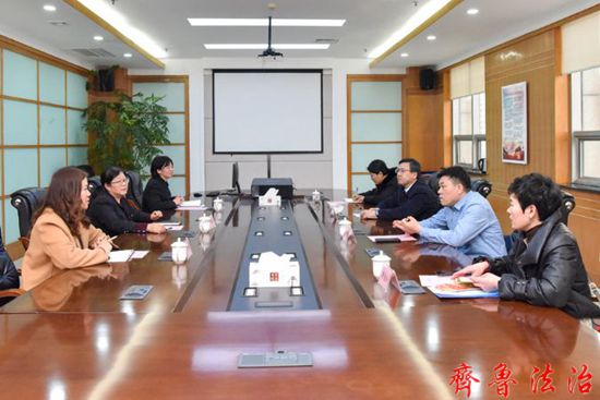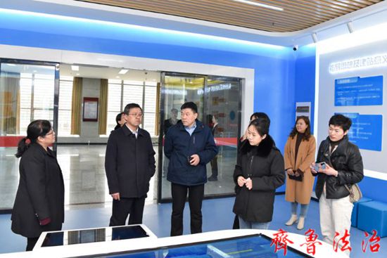 齐鲁法治(东营讯)李春军 2月28日下午,广饶县法院党组副书记、副院长李玉山一行4人到东营市东营区法院家庭教育指导一体化工作站、未成年人审判社会工作站参观调研。东营区法院副院长李凤华、少年法庭干警陪同调研。