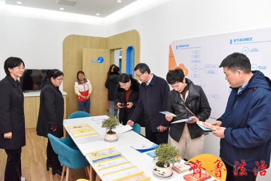 李玉山副院长一行先后参观了青少年法治教育基地、家庭教育指导一体化工作站、未成年人审判社会工作站,详细了解“两站”建立的意义目的、工作思路和运行模式以及下一步工作打算等内容。