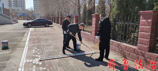 齐鲁法治(东营讯)李春军 为进一步规范单位停车秩序,扎实推进垦利法院“作风提优、管理提效”活动落细落实,真正让作风提优到“实”,让管理提效到“位”。2月26日,东营垦利法院综合办公室利用周末时间对院内停车位重新进行了规划,努力为大家打造文明、有序、和谐的停车环境。