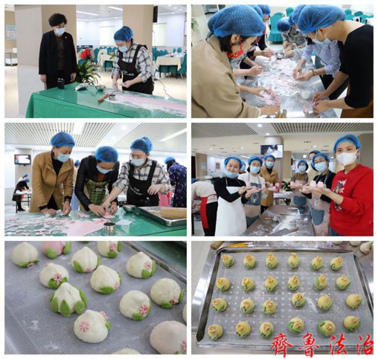 齐鲁法治(东营讯)李春军 3月4日,在“三八”国际劳动妇女节到来之际,东营中院组织女干警开展学做面点活动,并邀请退休女干警共同参与。东营中院党组成员、政治部主任张明磊参加活动。