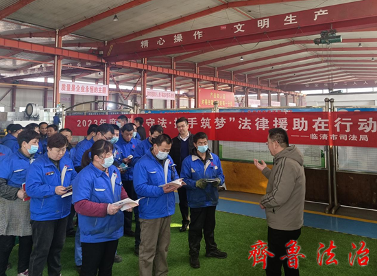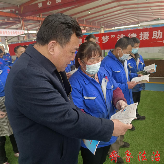 齐鲁法治(聊城讯)于清林 农民工是当今社会中的弱势群体,在生活中经常受到讨薪难等问题,再加农民工普遍法律意识薄弱,遇到欠薪问题往往选择忍气吞声或采取极端方式。为进一步保障农民工合法权益,提升农民工保护权益的法律意识,促进企业平稳有序发展,切实打通法律服务“最后一公里”。2月25日,聊城临清市司法局一行在法律援助中心丁凤林书记带领下走进山东鲁磁工业科技有限公司,开展“遵法守法,携手筑梦”法律援助宣传活动。