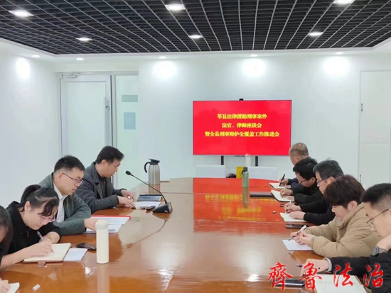 齐鲁法治(聊城讯)于清林 2月15日,聊城莘县法律援助中心召开刑事案件法官、律师座谈暨全县刑事辩护全覆盖工作推进会。部分法官、律师事务所负责人、部分刑事辩护律师和县法律援助中心工作人员参加会议。