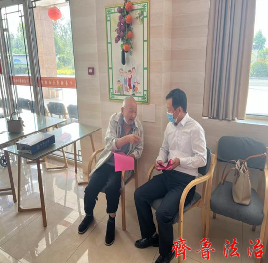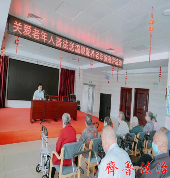 齐鲁法治(聊城讯)李春军 老吾老以及人之老。时值“九九”老人节来临之际,聊城阳谷县司法局法律援助中心到阳谷县福康医养院开展关爱老年人普法送温暖暨反养老诈骗宣讲活动;为老人们送去老年人权益保护等相关法律知识,也送去温暖和关爱,用实际行动表达敬老爱老之心。