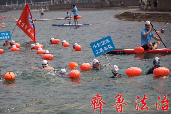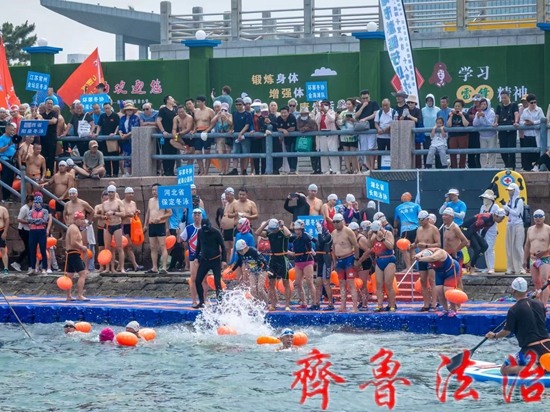 今天威海湾海水水温19度,对大多数外地泳友来说水温明显偏低,但这丝毫没有影响泳友们的热情,一位50多岁的大姐上岸后兴奋地说:“我全程游了近两千米,用时36分钟,在海里游泳真爽,下一届我还来”。