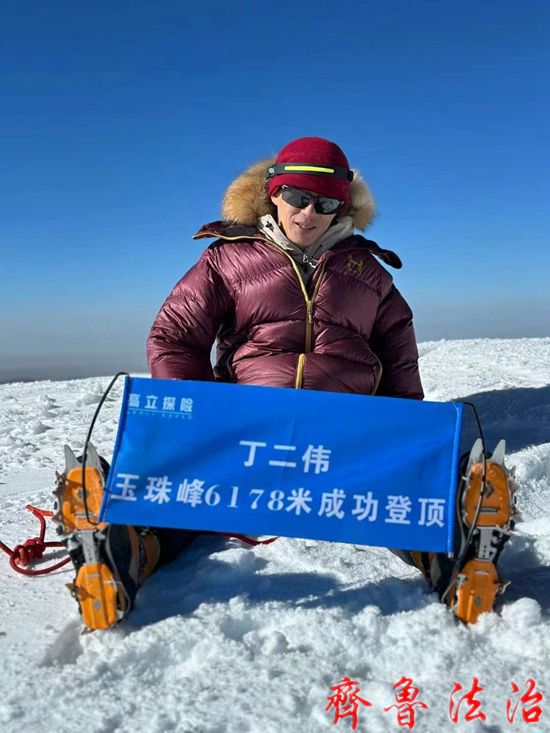 山东潍坊42岁双臂截肢男子丁二伟登顶玉珠峰。